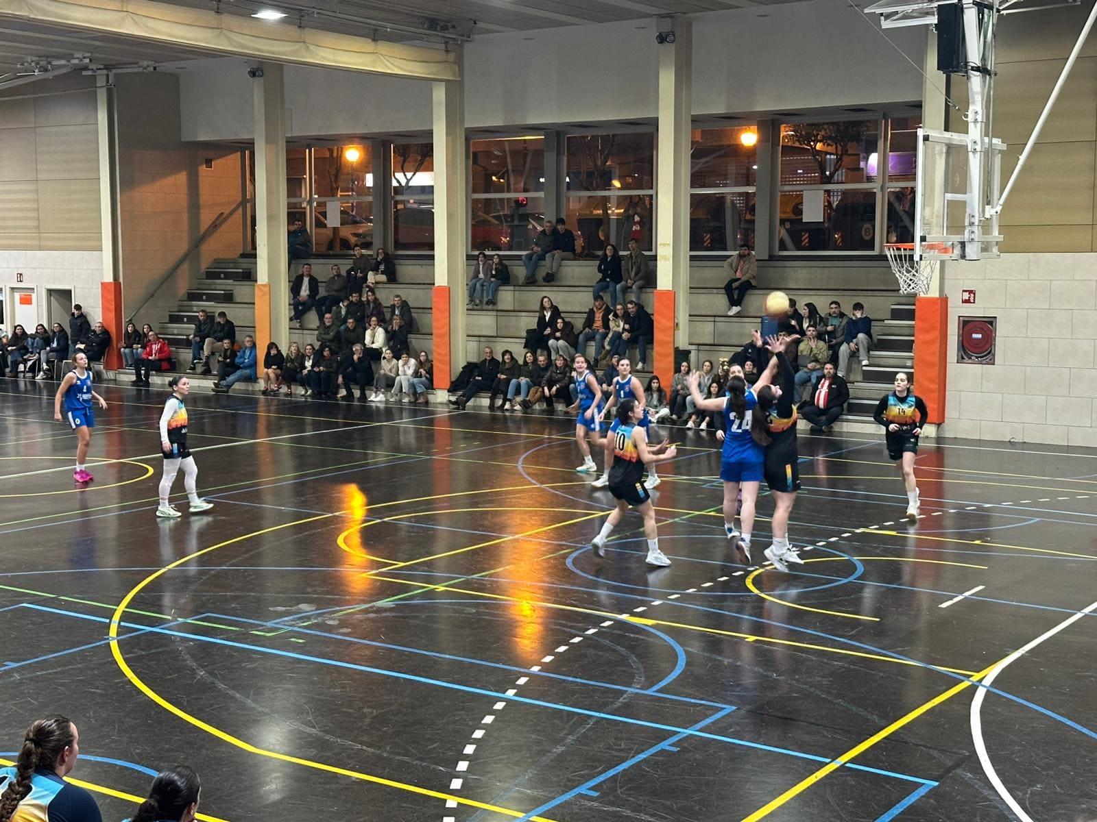 El partido fue muy igualado desde su comienzo pero el acierto en los triples y los 9 puntos de Alegria decantaban el primer cuarto a favor de los visitantes 17-18. En el segundo cuarto mejoró el juego local y los de Iñigo Román llegaron a contar con 9 puntos de ventaja 36-27 en el minuto 18 pero los visitantes reaccionaron antes del descanso reduciendo la diferencia 38-35.