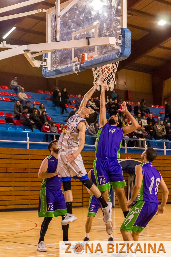 En el ecuador del cuarto, Jon “Von Karajan” Betolaza cometía su segunda falta. A los donostiarras le costaba encontrar soluciones a la defensa planteada por los locales gracias a la defensa de los postes morados en las situaciones de bloqueos indirectos en línea de fondo. La calidad individual de los gipuzkoanos les permitió reaccionar con un tiro libre anotado por Iñigo del Valle y una bandeja de Asier Azpeitia en transición. Ibai Mugarza no quería sorpresas ni relajaciones y cortó rápidamente el parcial visitante con un tiempo muerto. En la reanudación, los de Gotzon Arrieta presionaron con una defensa 1-2-2 a todo el campo. El cambio defensivo no tuvo efecto y Juan “Gladiator” Torres volvió a aparecer con cinco puntos consecutivos, 15-7. En la última posesión de los primeros diez minutos, Pablo Aranzabal aprovechó un bloqueo indirecto para salir liberado al alero, su defensor llegó tarde y el escolta le castigó el pie de apoyo para cerrar el cuarto con una bandeja marcando la máxima diferencia del partido, 17-7.